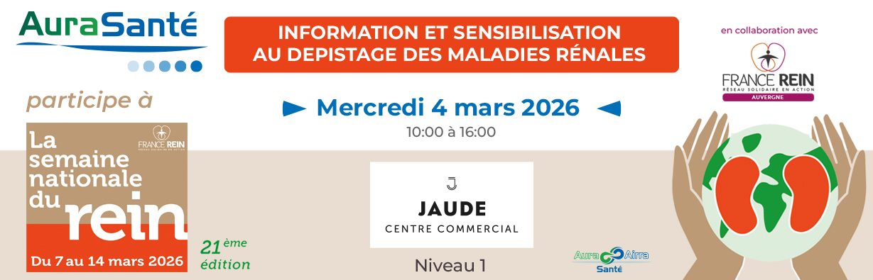 À l’occasion de la Semaine Nationale du Rein (du 7 au 14 mars), le Centre Jaude accueil France Rein et l’AuraSanté pour un atelier de prévention des maladies rénales.
